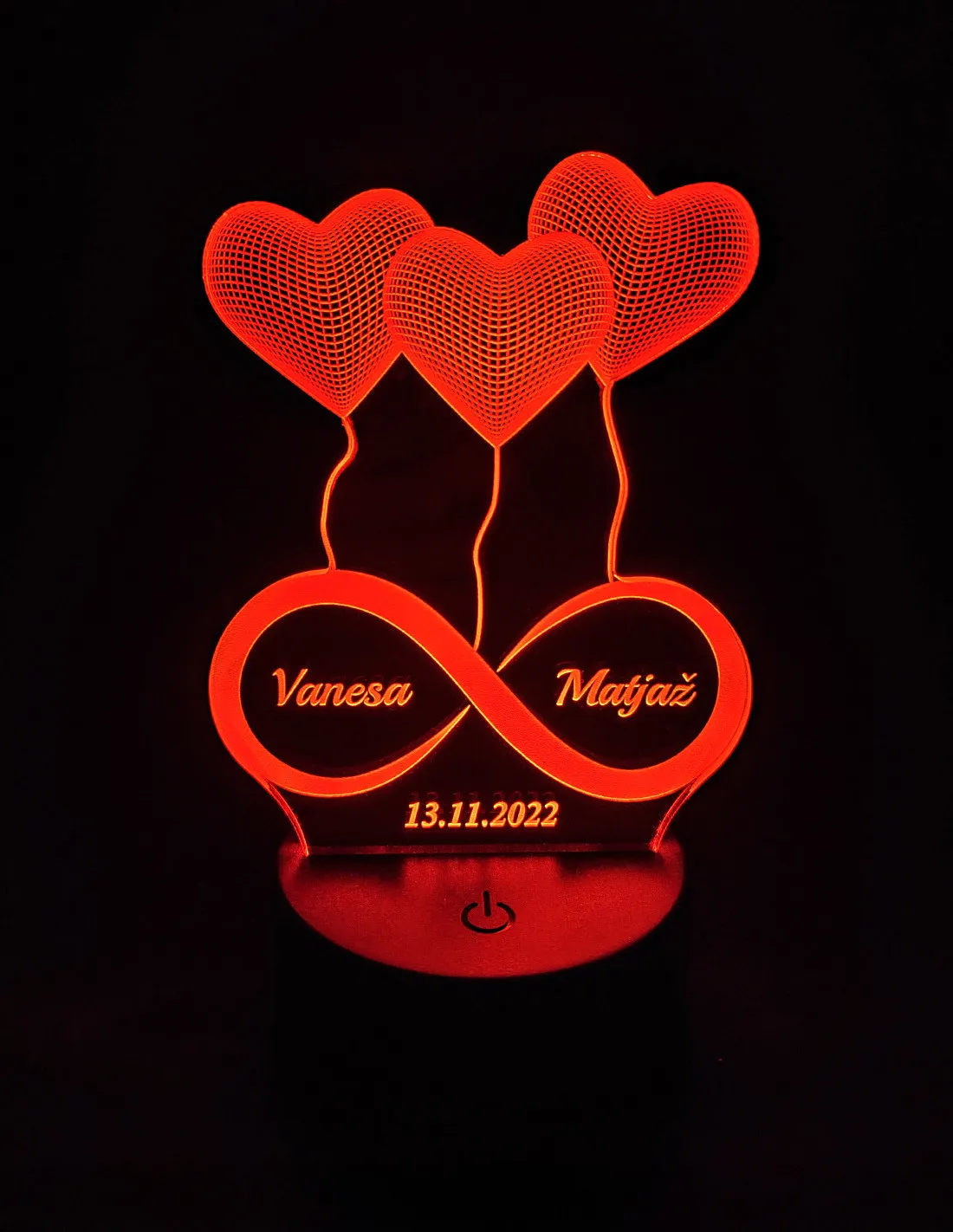 Personalisierte LED Lampe mit Herz & Rose – Graviertes Liebeslicht