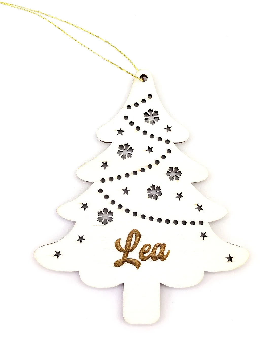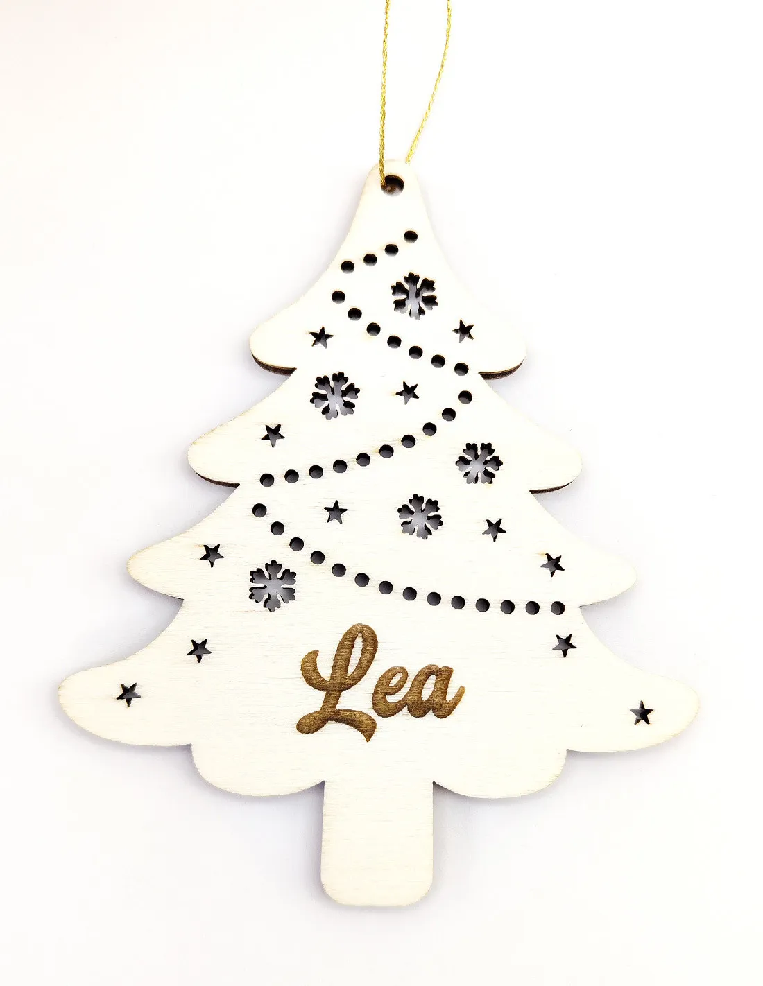 Christmas tree ornament with personalized name and star cutouts