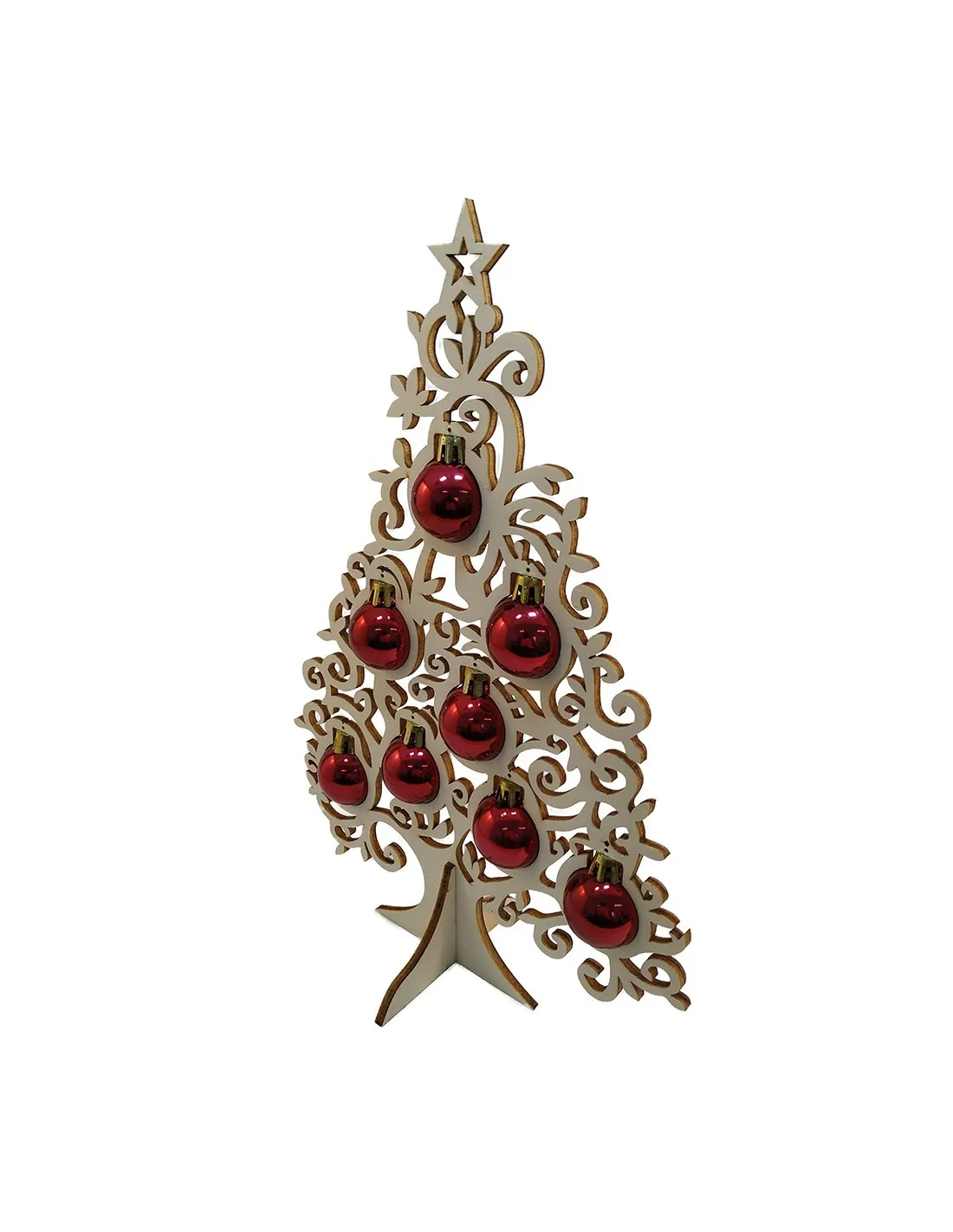 This decorative wooden Christmas tree delivers instant holiday spirit without taking over your space. Precision cut from plywood, it stands on its own and comes with shiny baubles, so it’s ready to display the moment you unpack it.