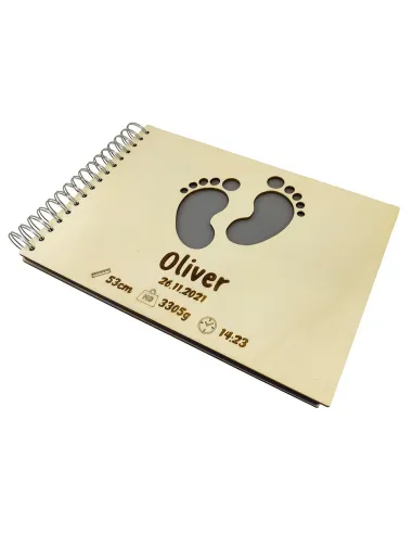 There’s nothing more special than the arrival of a new baby — and this custom wooden photo album lets you capture those precious first moments forever. With delicate baby footprints cut into the cover and your personalized engraving, it’s the perfect way to store milestones, memories, and those tiny little smiles.