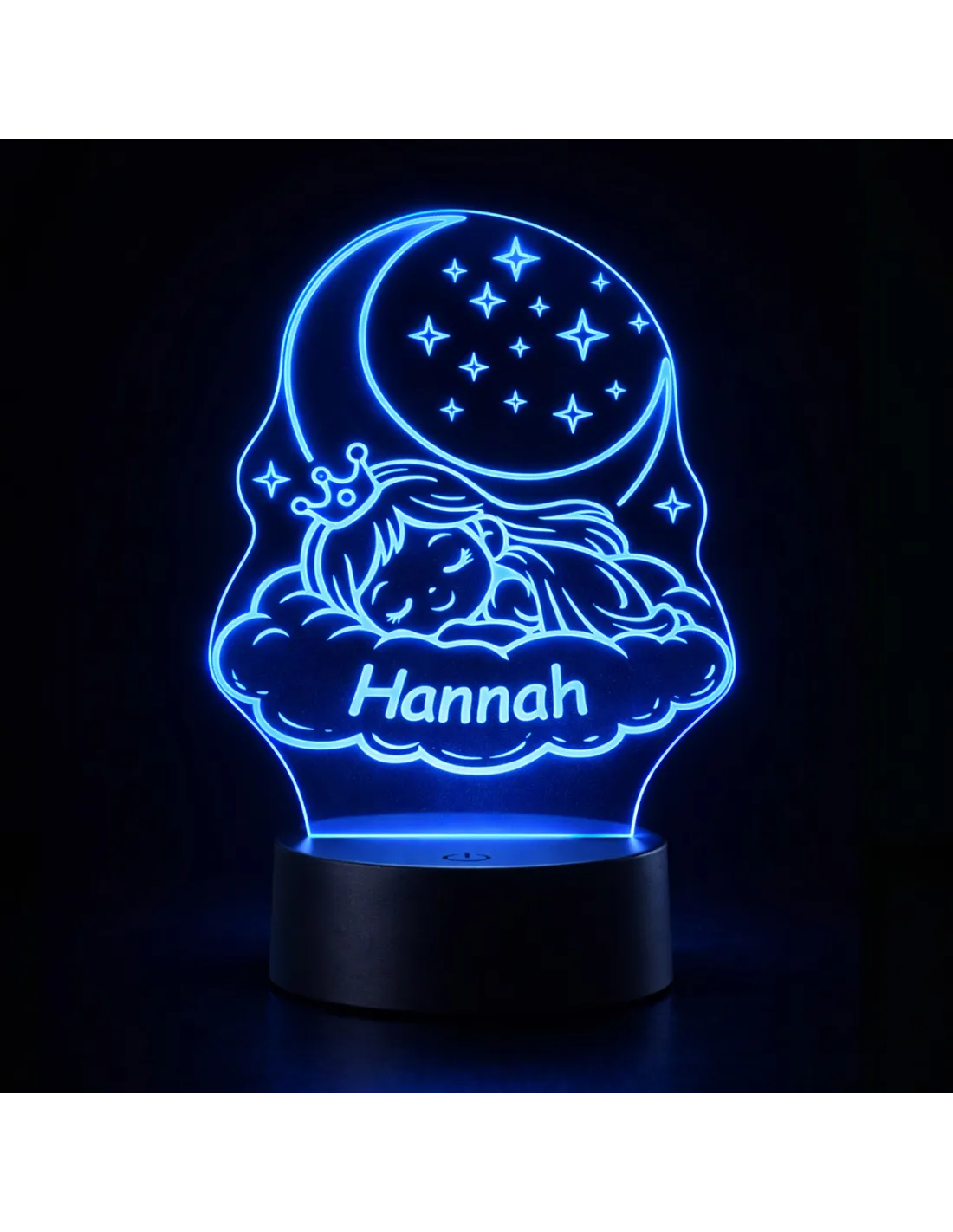 Luz nocturna LED de princesa personalizada con nombre en color azul