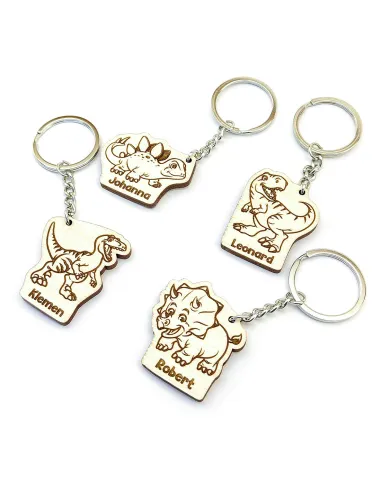 Este llavero de dinosaurio personalizado es un detalle genial para peques que no paran de rugir por sus criaturas favoritas. Puedes elegir entre 8 especies diferentes y grabar el nombre que tú quieras. Ideal para mochilas, estuches, llaves o simplemente como recuerdo especial.