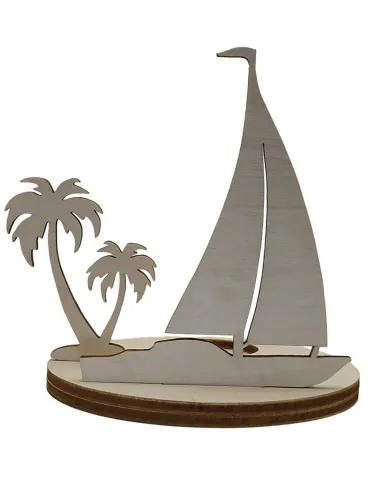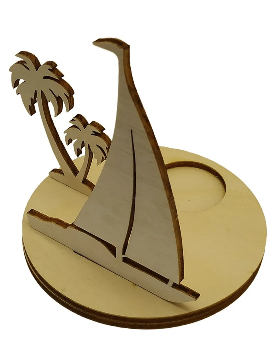 Portavelas decorativo con velero y palmeras tropicales