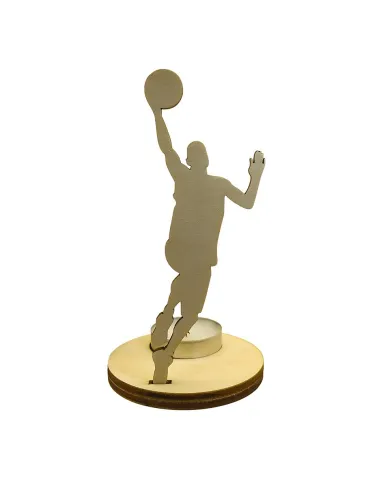 Este portavelas de madera representa a un jugador de baloncesto en pleno salto hacia la canasta. Cuando lo enciendes por detrás, proyecta una silueta llena de movimiento que convierte cualquier rincón en una escena vibrante y llena de energía.