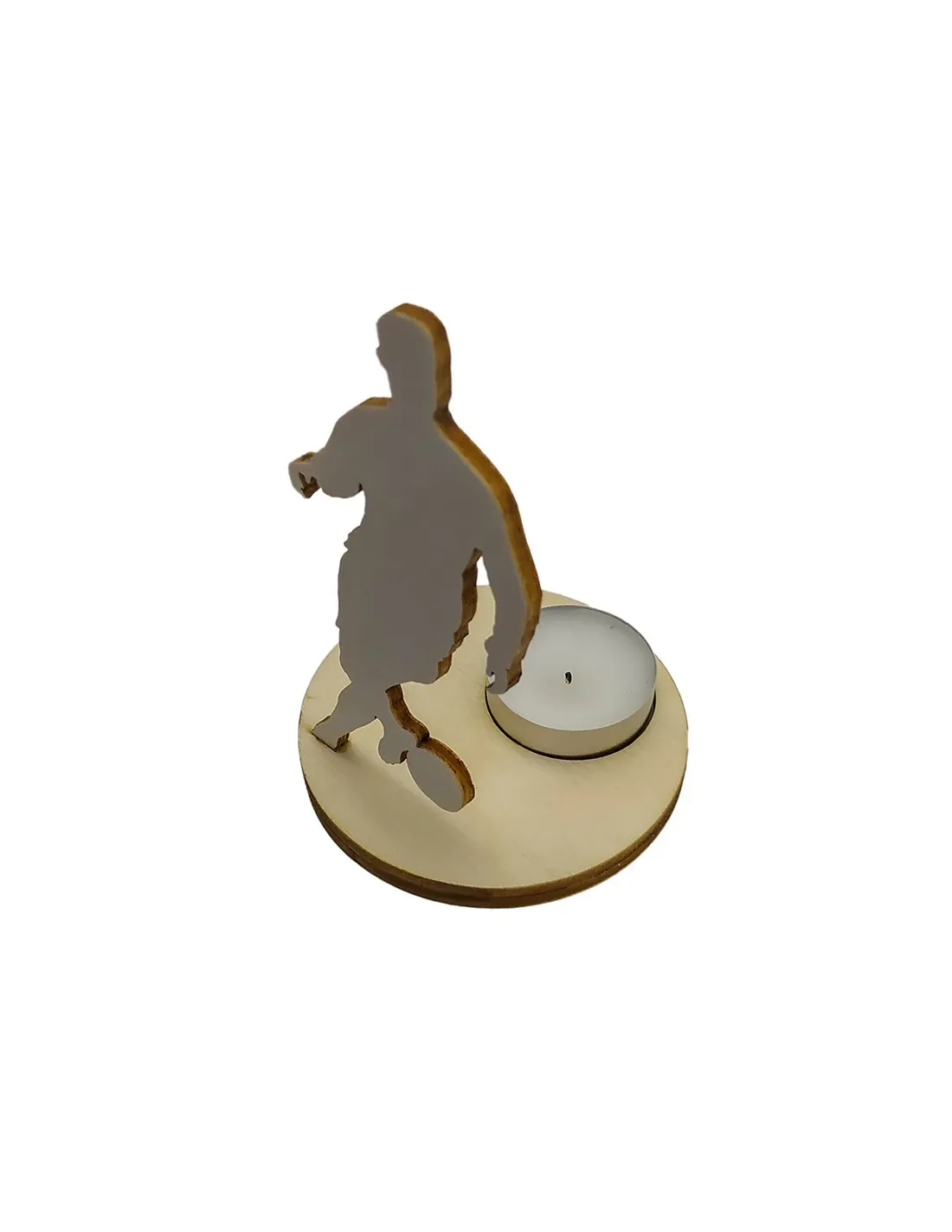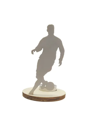 Este portavelas de madera con la silueta de un jugador de fútbol driblando el balón transforma cualquier espacio en una escena dinámica. Al encenderlo por detrás, las sombras dan vida a tu pasión por el deporte rey. Es perfecto para noches de partido, tertulias entre amigos o como detalle decorativo en habitaciones juveniles.