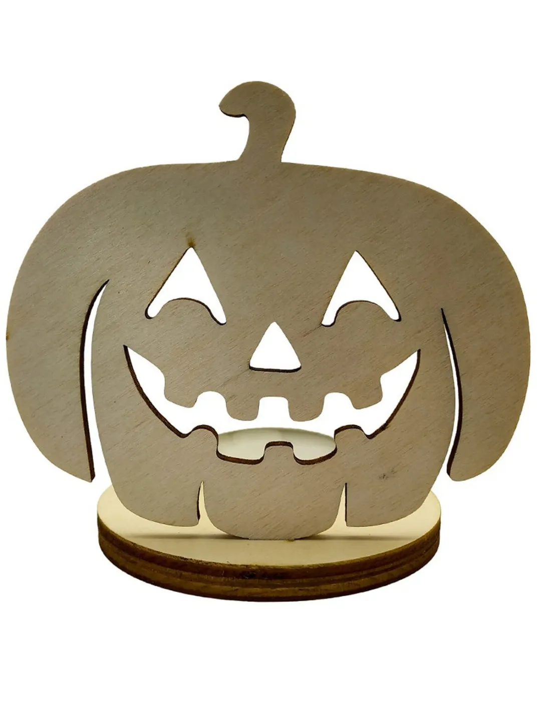 No todo en Halloween tiene que dar miedo. Este portavelas con calabaza sonriente es perfecto para quienes prefieren un toque divertido y familiar. Cuando se enciende la vela detrás, la silueta ilumina el espacio con una luz suave y acogedora, ideal para noches otoñales o fiestas con peques.