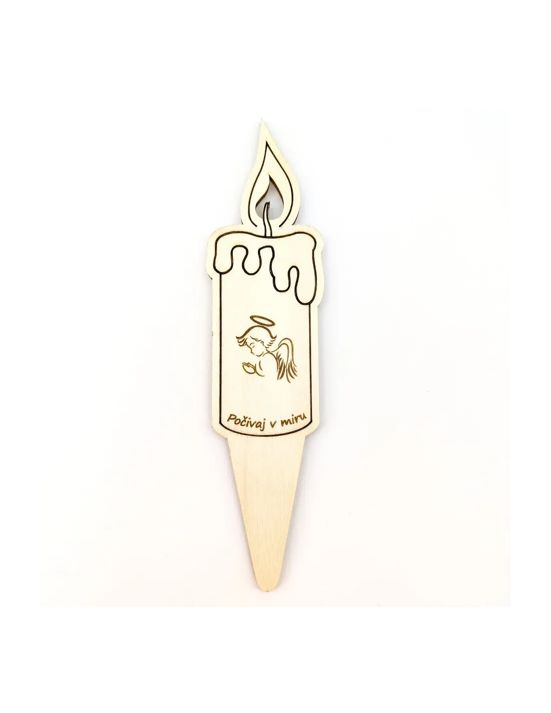 Esta vela de madera con pincho es una forma delicada de mantener viva la memoria de alguien especial. No se derrite ni se consume, y puedes elegir entre tres diseños simbólicos y grabar un nombre o mensaje. También tienes la opción de añadir una llama que brilla suavemente por la noche.
