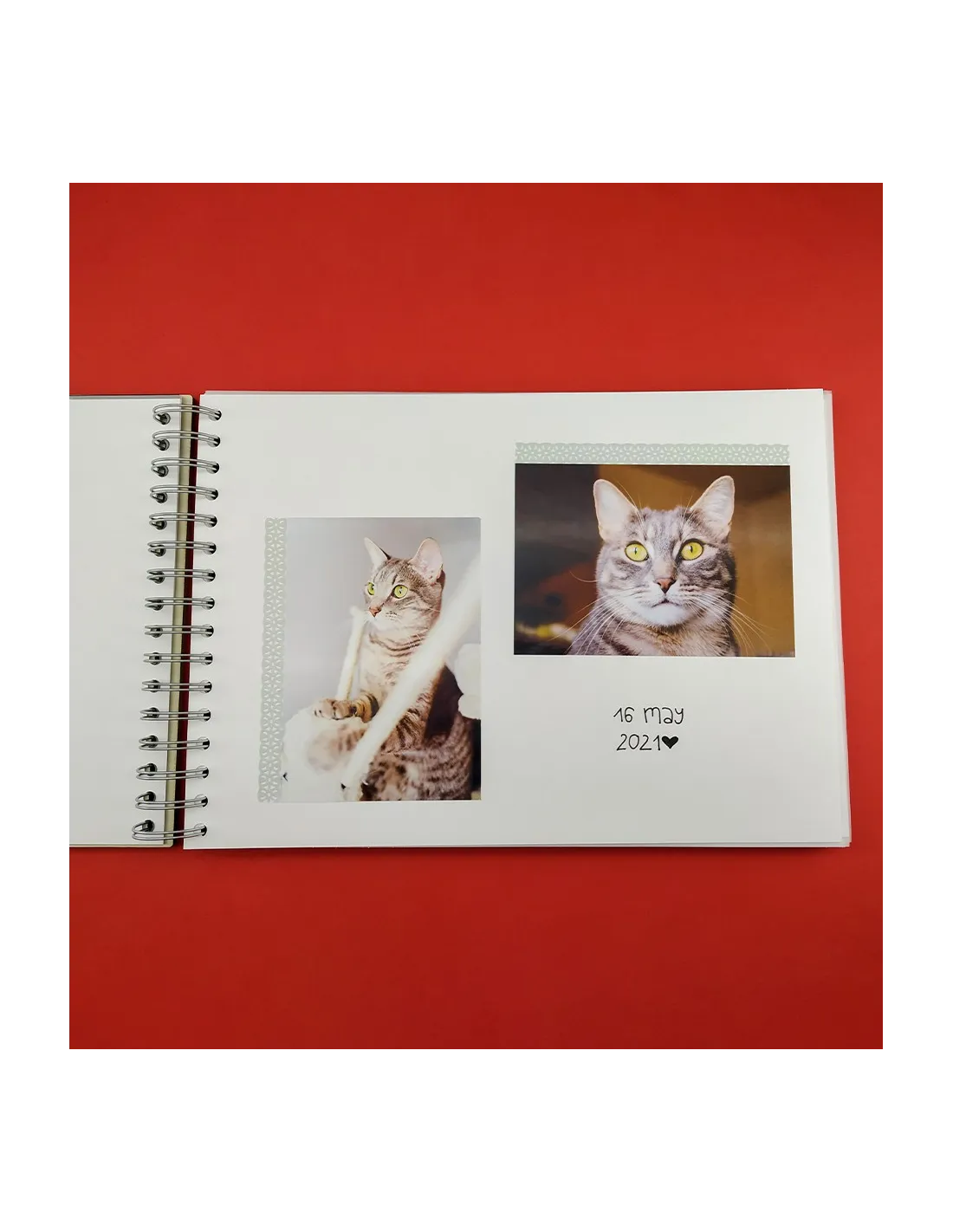 C’est un véritable carnet de souvenirs, pensé pour garder une trace des moments partagés avec ton chat. Chaque page raconte une histoire, chaque détail est personnalisé.