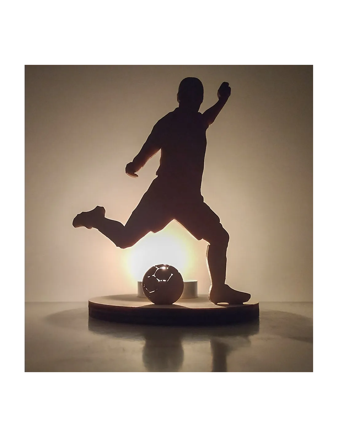 Voici un photophore qui ne passe pas inaperçu : une silhouette dynamique d’un joueur en pleine frappe, prête à illuminer ta pièce d’une touche sportive. Une fois la bougie allumée, l’ombre projetée donne vie au mouvement, parfait pour les soirs de match ou une ambiance originale dans un salon ou une chambre.