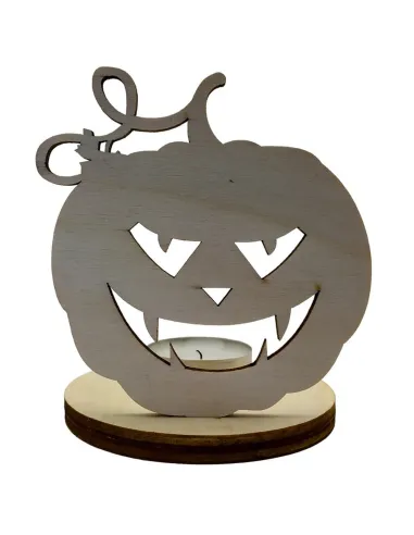 Avec ses yeux perçants et son sourire carnassier, cette citrouille n’est pas là pour rigoler. Ce photophore en bois met direct l’ambiance : il suffit d’une bougie LED pour faire ressortir chaque détail de sa grimace et projeter une lueur inquiétante sur les murs. Parfait pour une soirée frissons à la maison.