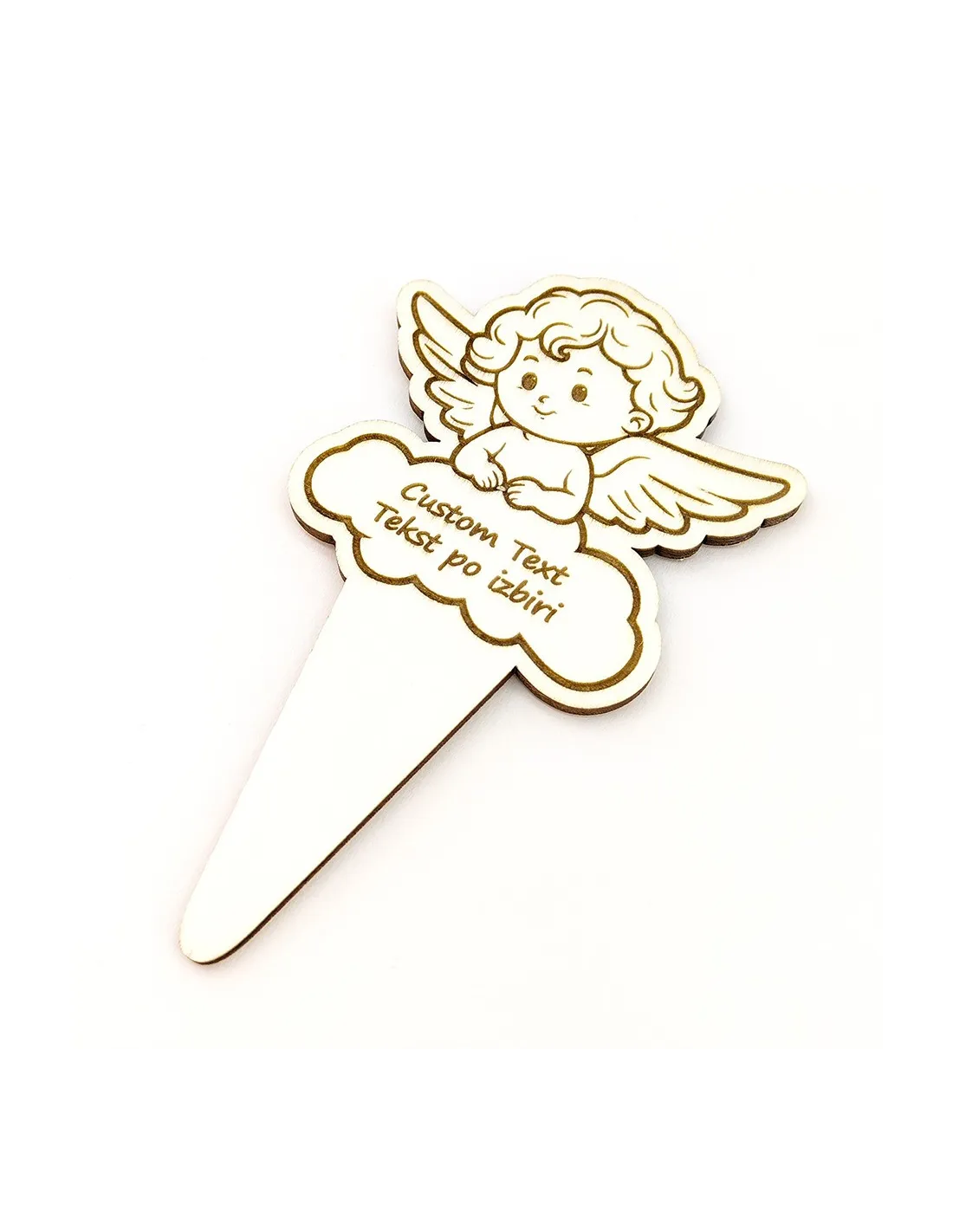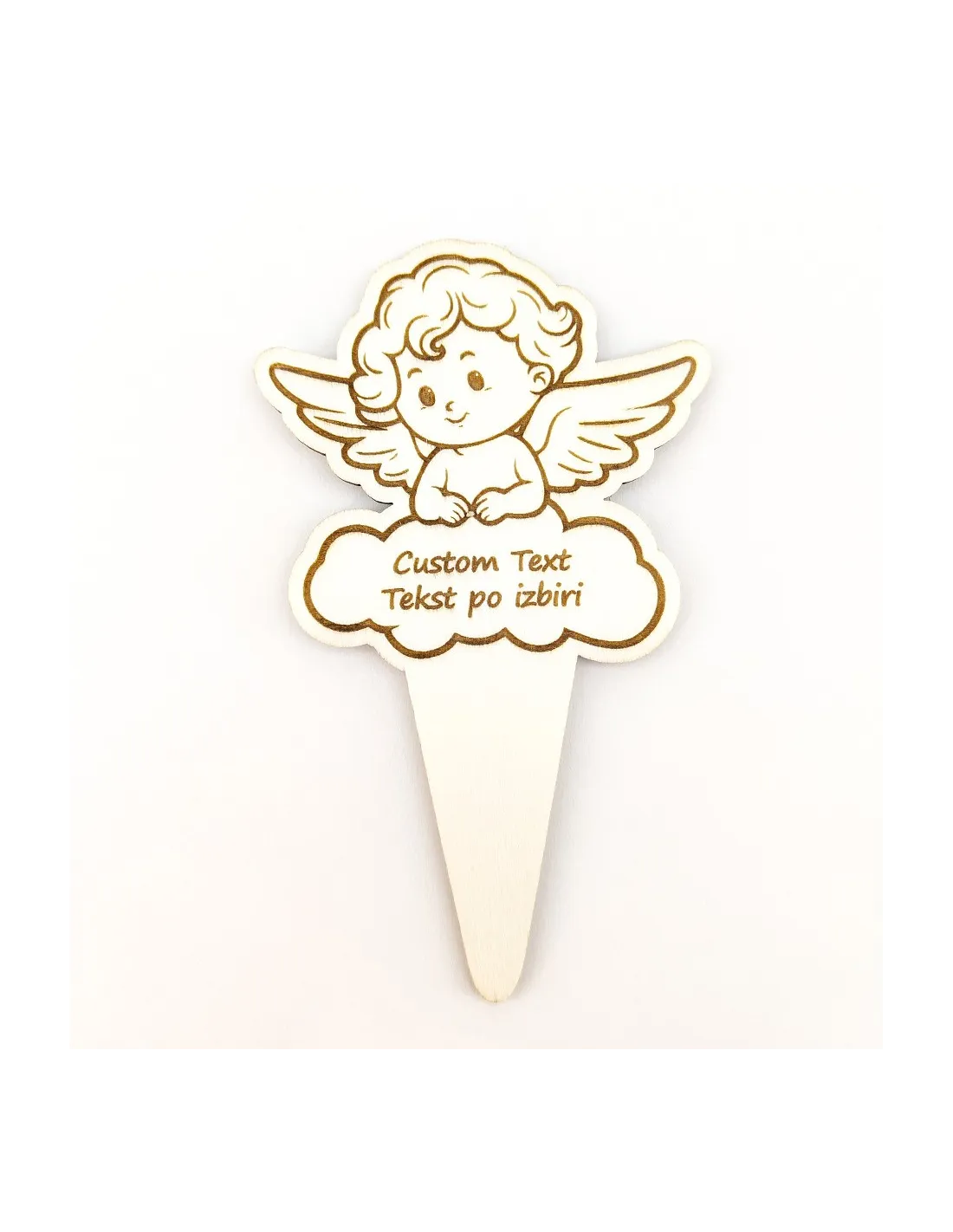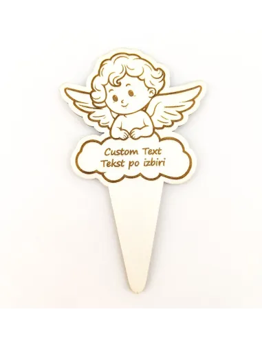 Bougie funéraire ange en bois avec piquet personnalisable