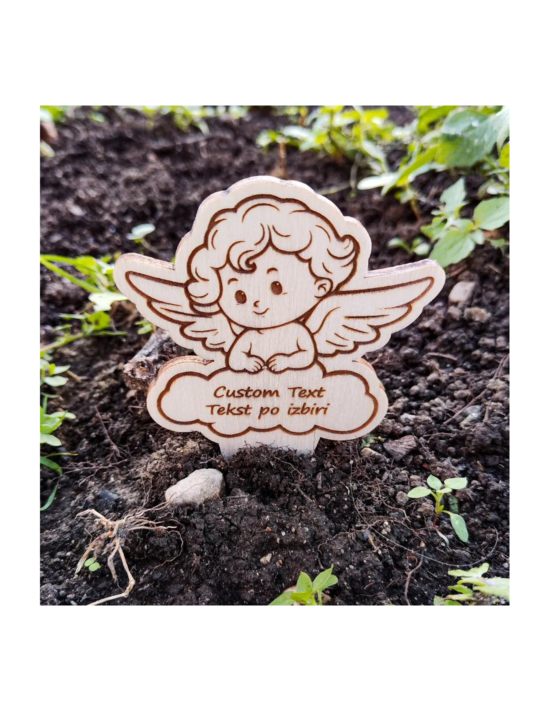 Ce petit ange en bois ne demande aucun entretien et tient longtemps en extérieur. Il apporte une touche symbolique forte, sans artifices, pour ceux qui souhaitent rendre hommage de manière discrète mais personnelle. Il suffit de choisir ton texte – et nous nous occupons du reste.