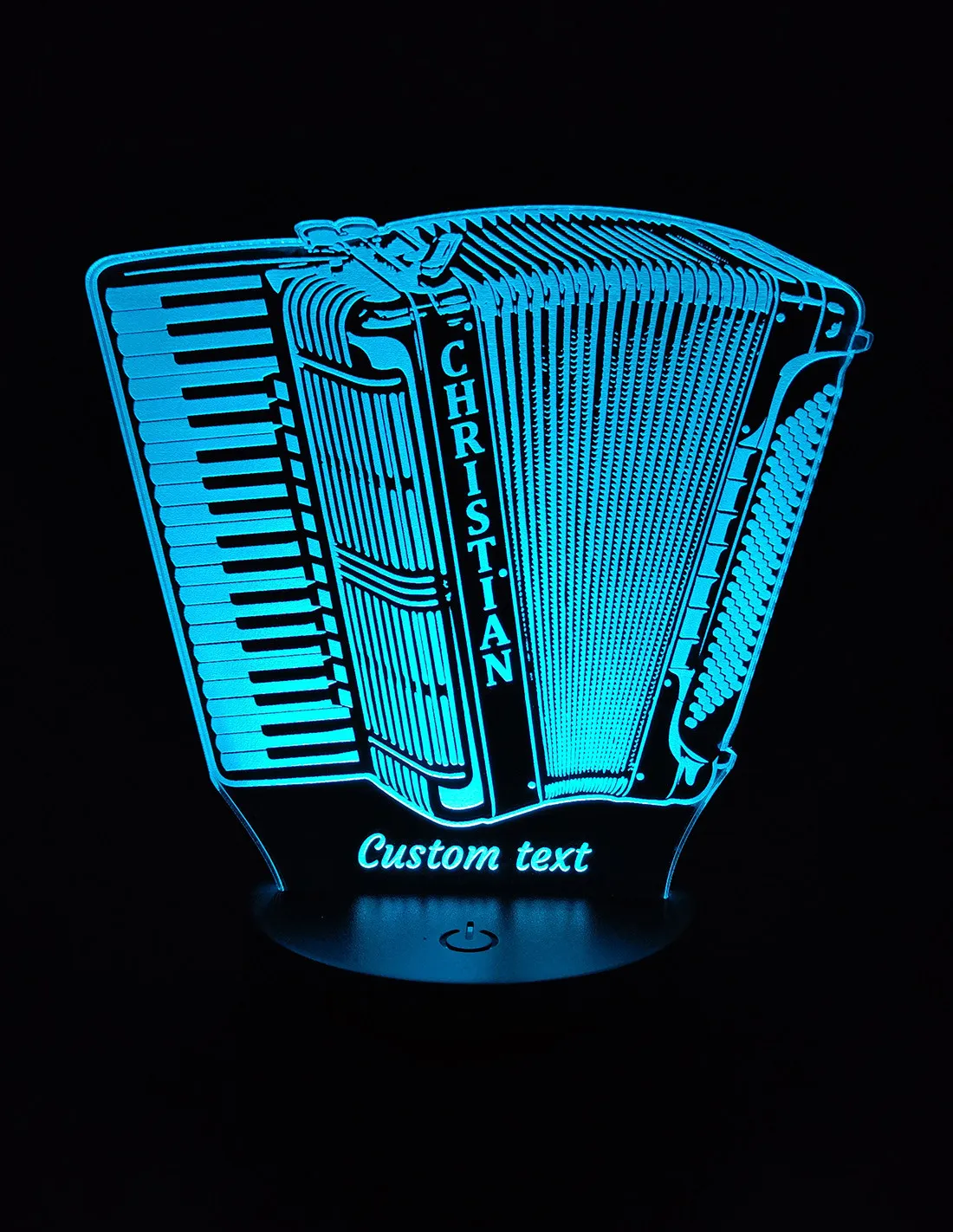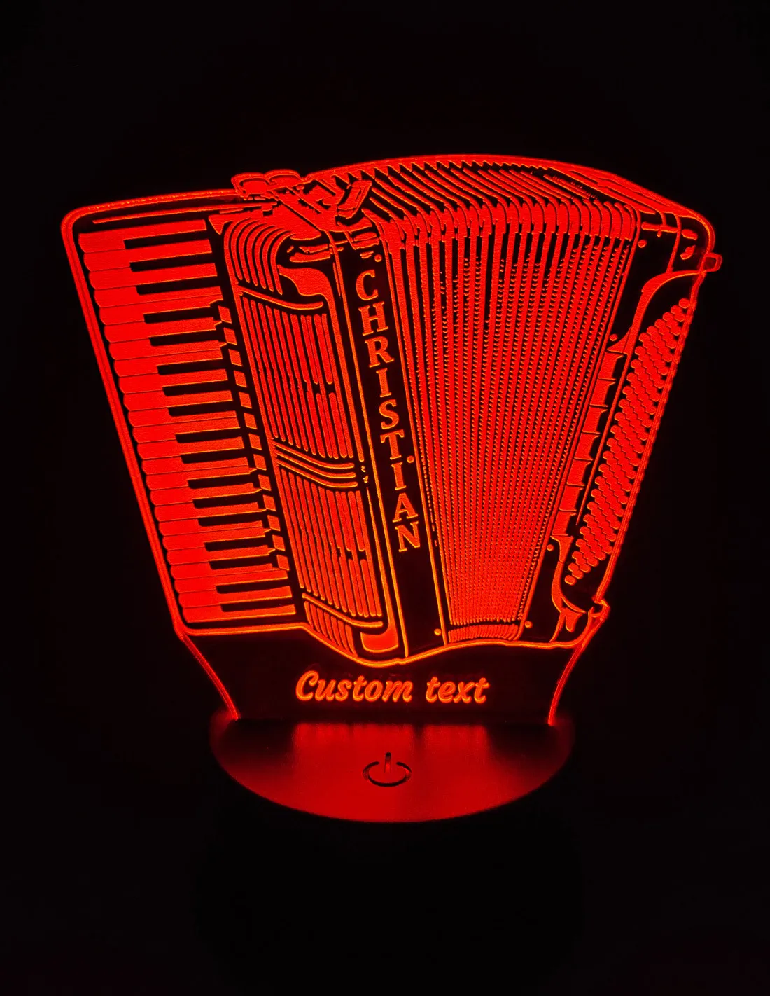 Envie d’un objet vraiment original pour ton salon, ton coin musique ou pour offrir à un(e) passionné(e) d’accordéon ? Cette lampe LED personnalisée mettra leur instrument favori à l’honneur, avec leur nom et le texte de ton choix gravés pour un effet ultra perso.