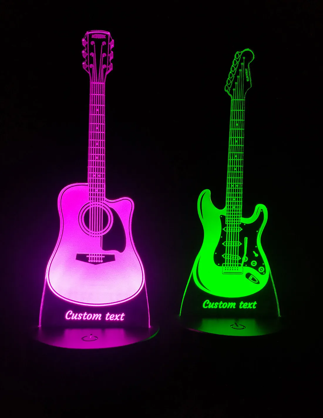 Envie d’un cadeau qui sort vraiment du lot ? Cette lampe LED guitare personnalisée, dispo en acoustique ou électrique, avec ton texte gravé, apporte une touche musicale ultra stylée à n’importe quelle pièce. Parfaite pour les passionnés de gratte ou ceux qui rêvent de scène.