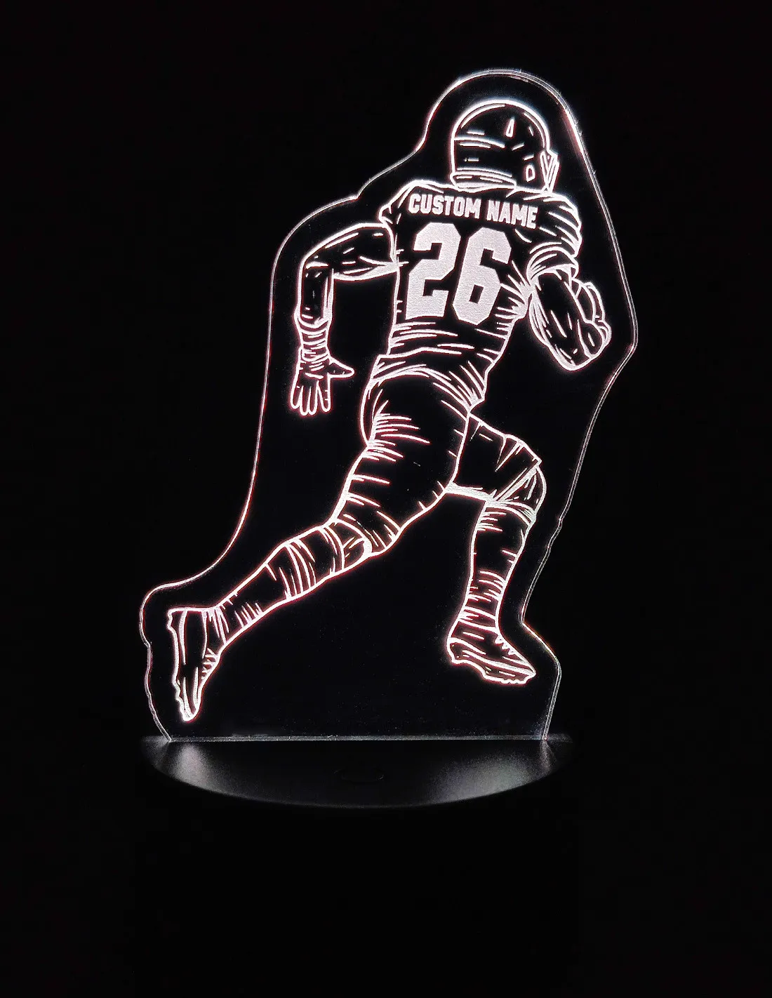 Tu cherches un cadeau original pour un joueur ou un fan de football américain ? Cette lampe LED personnalisée, avec leur prénom et numéro sur le maillot, est la touche parfaite pour illuminer leur chambre, bureau ou salon et montrer leur passion au quotidien.