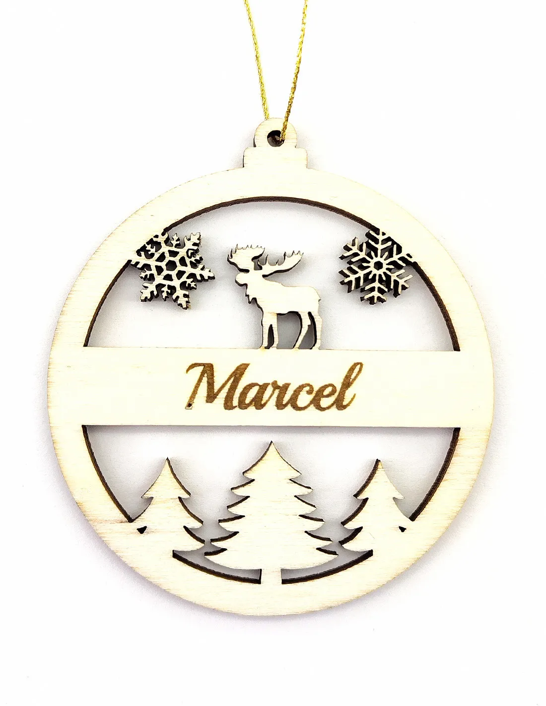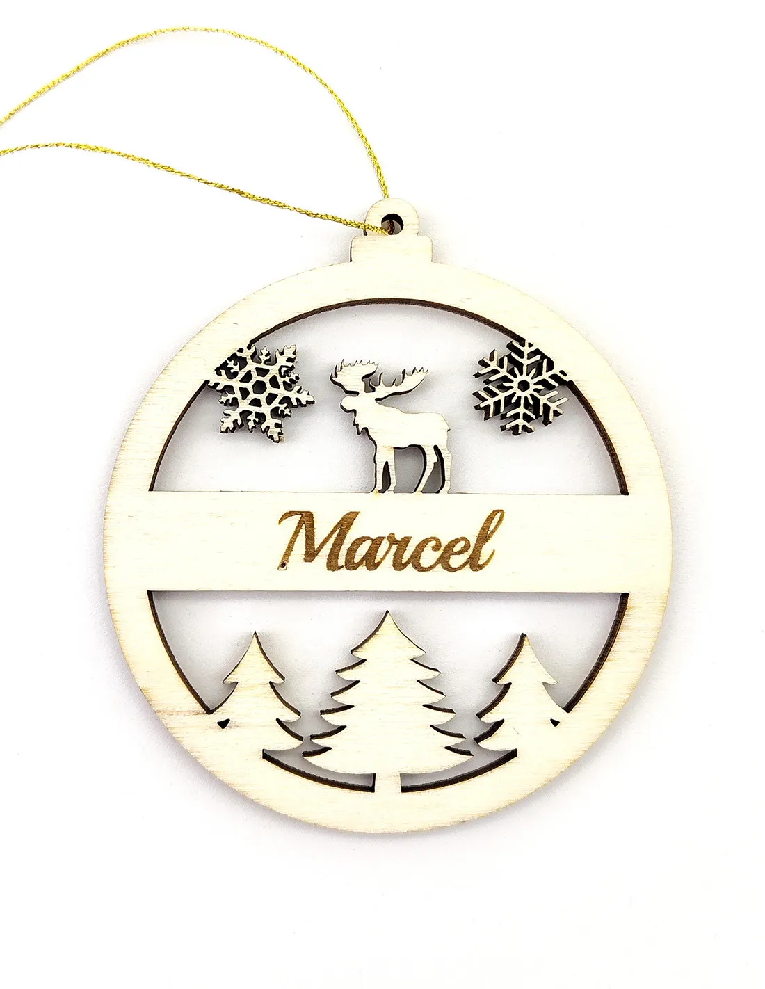 Tražiš nešto posebno što će tvojem božićnom drvcu dati toplinu i osobnost? Ovaj personalizirani ukras s motivom jelena, borova i pahulja stvara savršeni zimski ugođaj – s imenom po tvojoj želji!