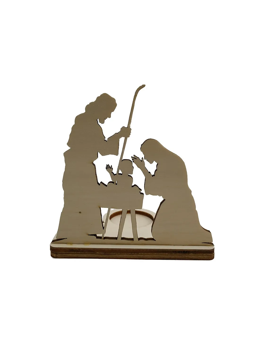 Drveni božićni svijećnjak s motivom jaslica – Isus, Marija i Josip