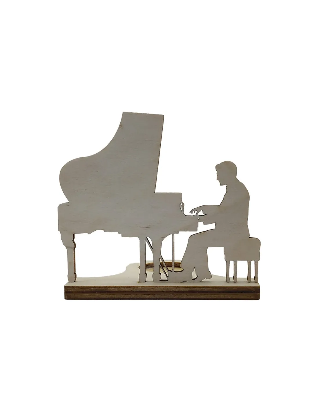 Ovaj svijećnjak s motivom pijanista stvara toplu i mirnu atmosferu u svakom kutku doma. Kad se iza njega upali svijeća, sjene klavira i glazbenika plešu po zidovima – savršeno za večeri uz opuštanje ili romantičnu pozadinu.