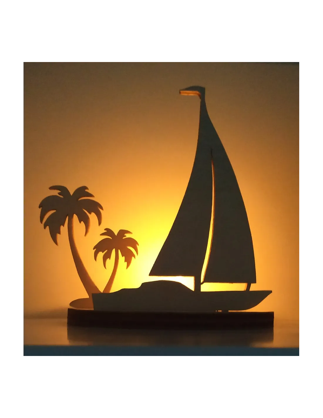 Ovaj svijećnjak s motivom jedrilice i palmi stvoren je za sve koji obožavaju mirne ljetne večeri uz more. Kad se svijeća zapali, prostor ispunjava topla, opuštajuća svjetlost, dok silueta jedrilice priziva osjećaj slobode i odmora.