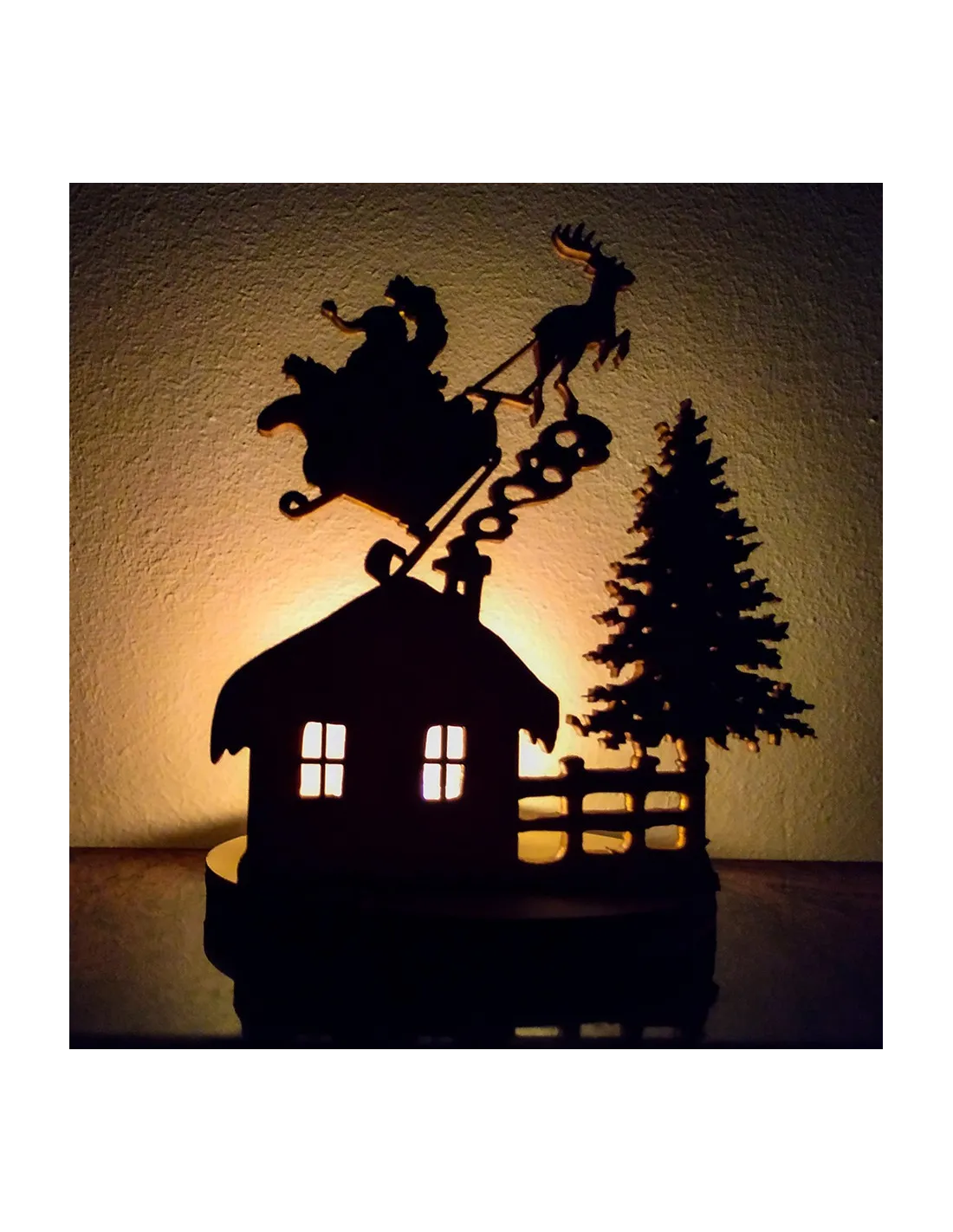 - Čaroban dizajn: Silueta Djeda Božićnjaka, soba i bora izrezbarena s puno detalja.