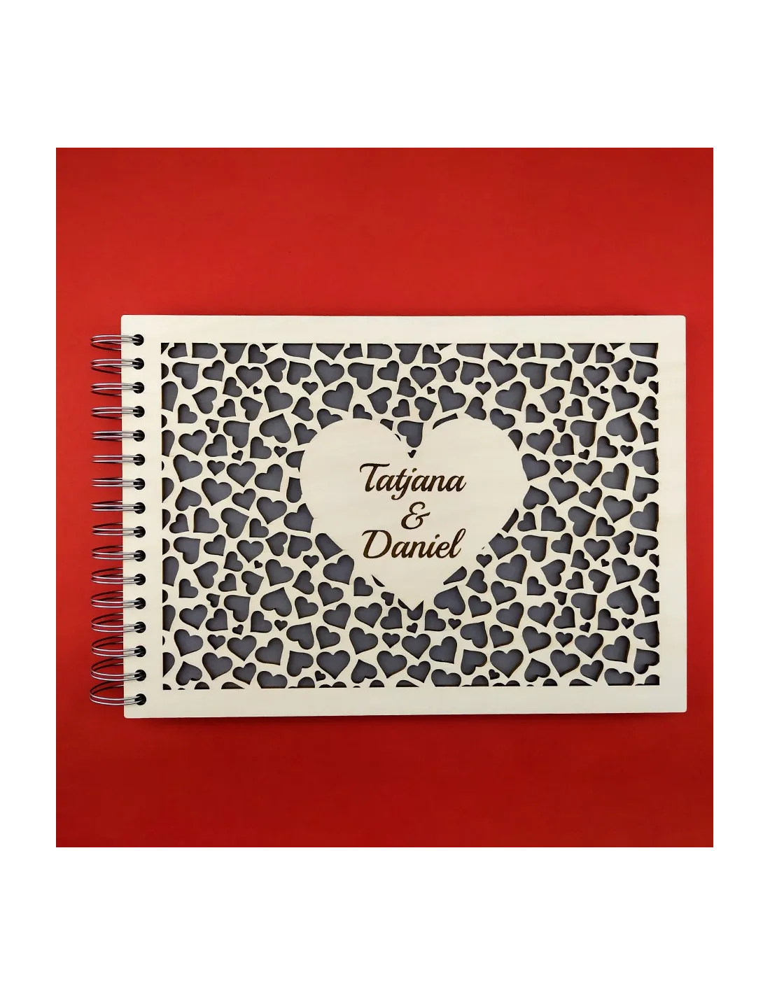 Cerchi un regalo che parli davvero al cuore? Questo album fotografico in legno, con motivo traforato a cuori e incisione personalizzata sulla copertina, è perfetto per raccontare una storia d’amore. Ideale per anniversari, San Valentino o semplicemente per celebrare un legame speciale.