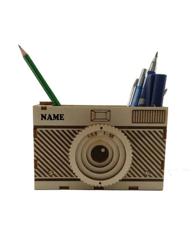 Hai mai visto un porta-penne che sembra una fotocamera vintage? Questo modello è perfetto per chi ama il design originale e ha una passione per la fotografia. Realizzato in legno di pioppo tagliato a laser, aggiunge un tocco creativo al tuo spazio. E puoi anche farci incidere il tuo nome o una frase breve.