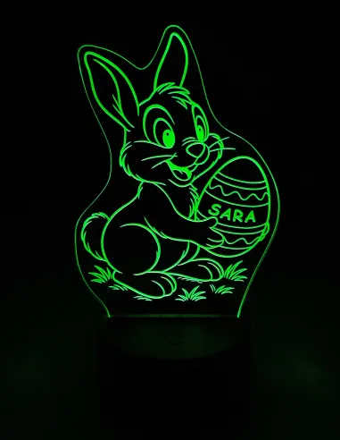 Questa tenera lampada LED con coniglietto pasquale illuminerà la stanza con stile e un tocco personale: puoi personalizzare il grande uovo che tiene in zampa con un nome a tua scelta. Perfetta per i bambini, per decorare la casa o da mettere nel cestino pasquale.