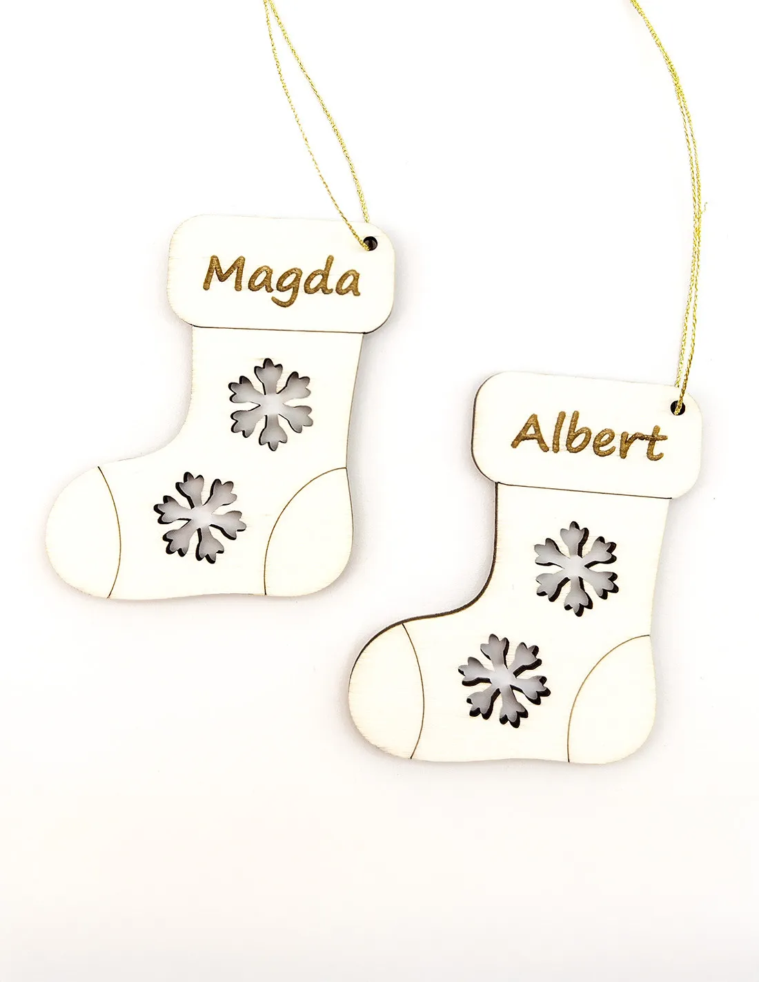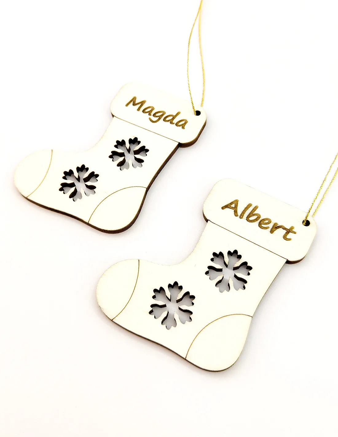 - Design giocoso: Forma classica della calza natalizia con fiocchi di neve decorativi.