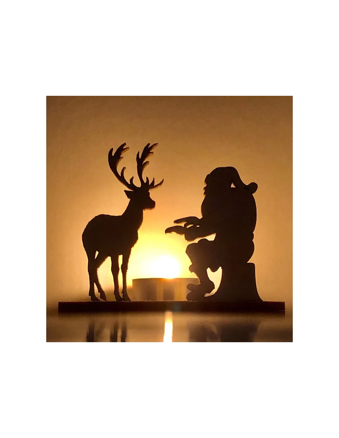 Porta un tocco caldo e festoso nella tua casa con questo portacandela artigianale in legno. Le sagome di Babbo Natale e della renna, illuminate dalla luce di una candela, proiettano ombre suggestive che creano un’atmosfera davvero speciale. È una decorazione natalizia che conquista a prima vista, perfetta anche come pensiero originale per amici o familiari.