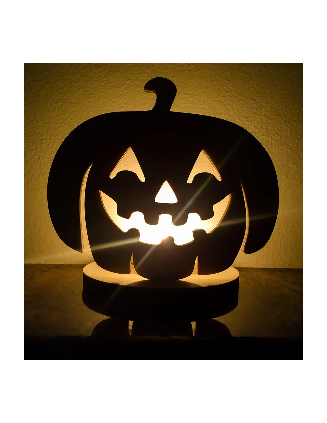 Questa simpatica zucca luminosa è la scelta ideale per chi vuole decorare Halloween con un tocco più giocoso che spaventoso. Il suo sorriso intagliato prende vita quando si accende la candela dietro la sagoma, creando un effetto visivo che conquista grandi e piccini.