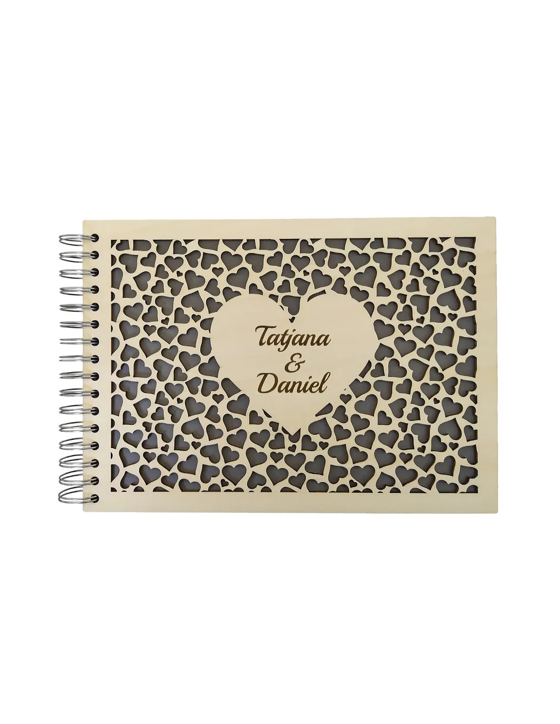 Podarita nekaj res posebnega – ročno izdelan lesen foto album z izrezanim vzorcem srčkov in vajinima imenoma na naslovnici. Ne glede na to, ali gre za obletnico, Valentinovo ali osebno presenečenje, bo ta album postal vajin najlepši arhiv spominov.